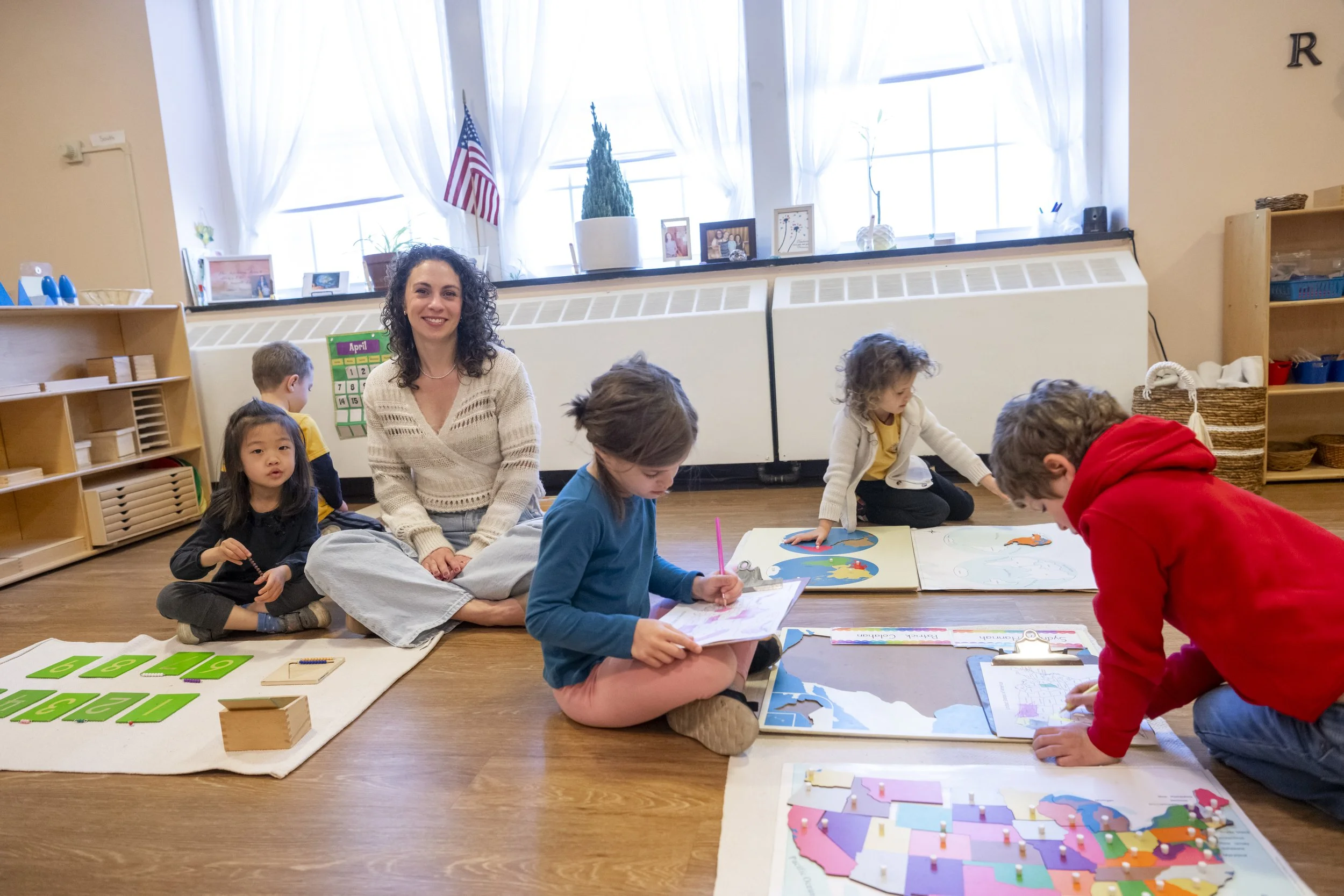 The children are given lessons individually or in small groups.  They choose work from the five areas of the classroom: practical life, sensorial, language, math, and culture. Activities focus on academic concepts as well as the development of independence, coordination, control of movement, and order.  Art, music, and snack choices are available throughout the work time.